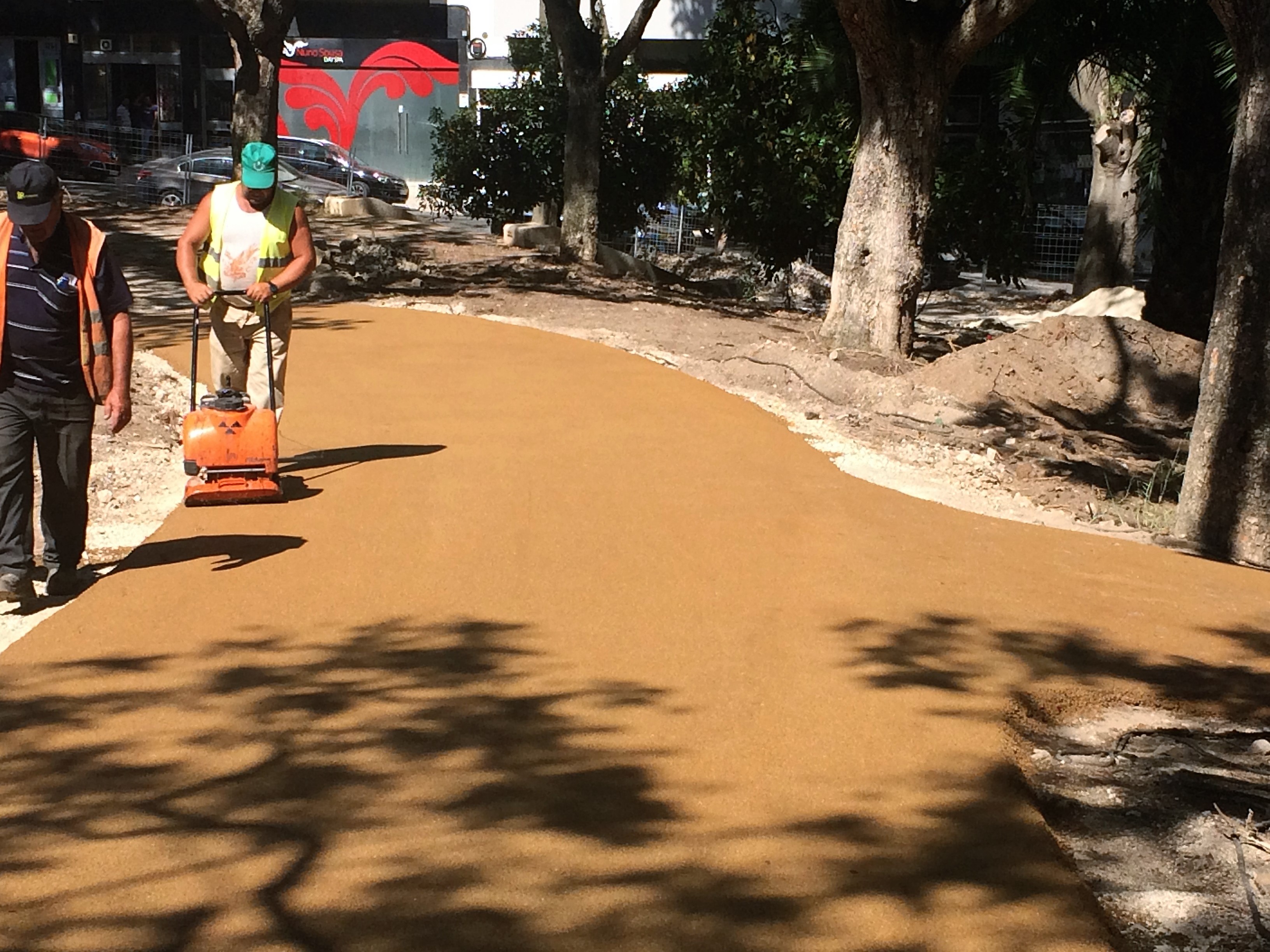 - Construção do passeio pedonal com aplicação de argamassa betuminosa colorida, cor vermelho, junto ao Rio Nabão - Tomar
